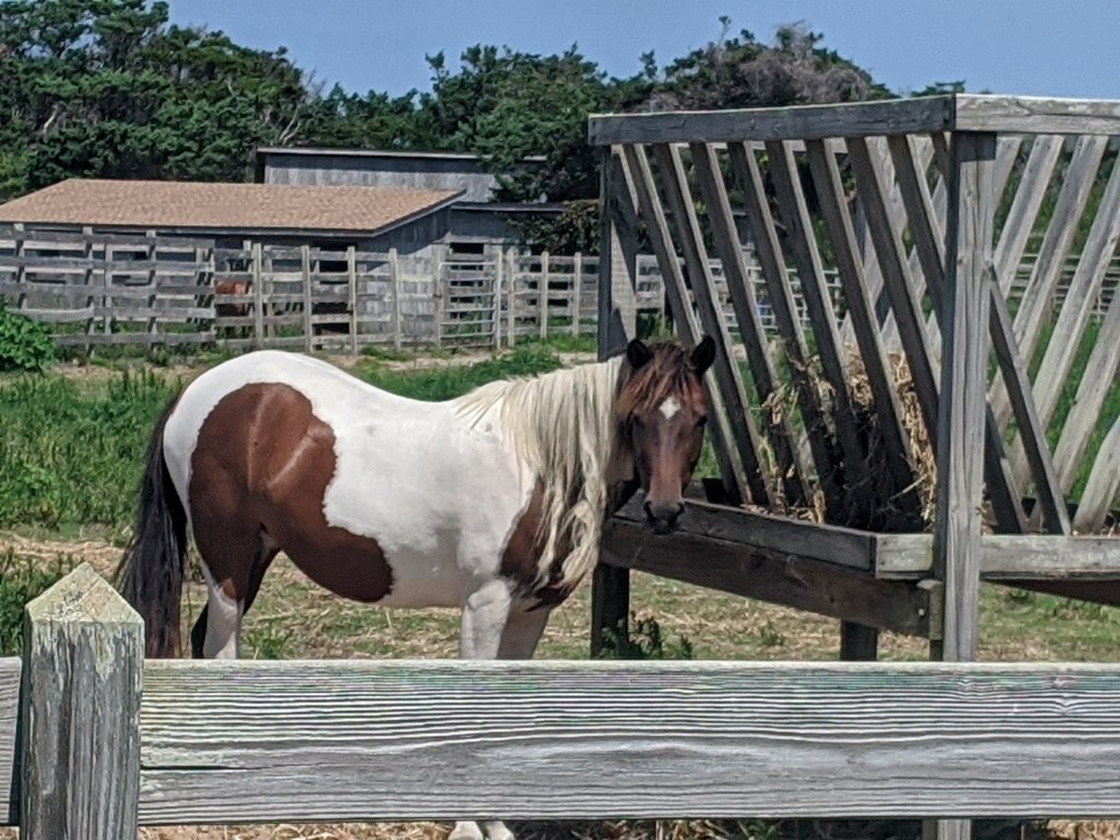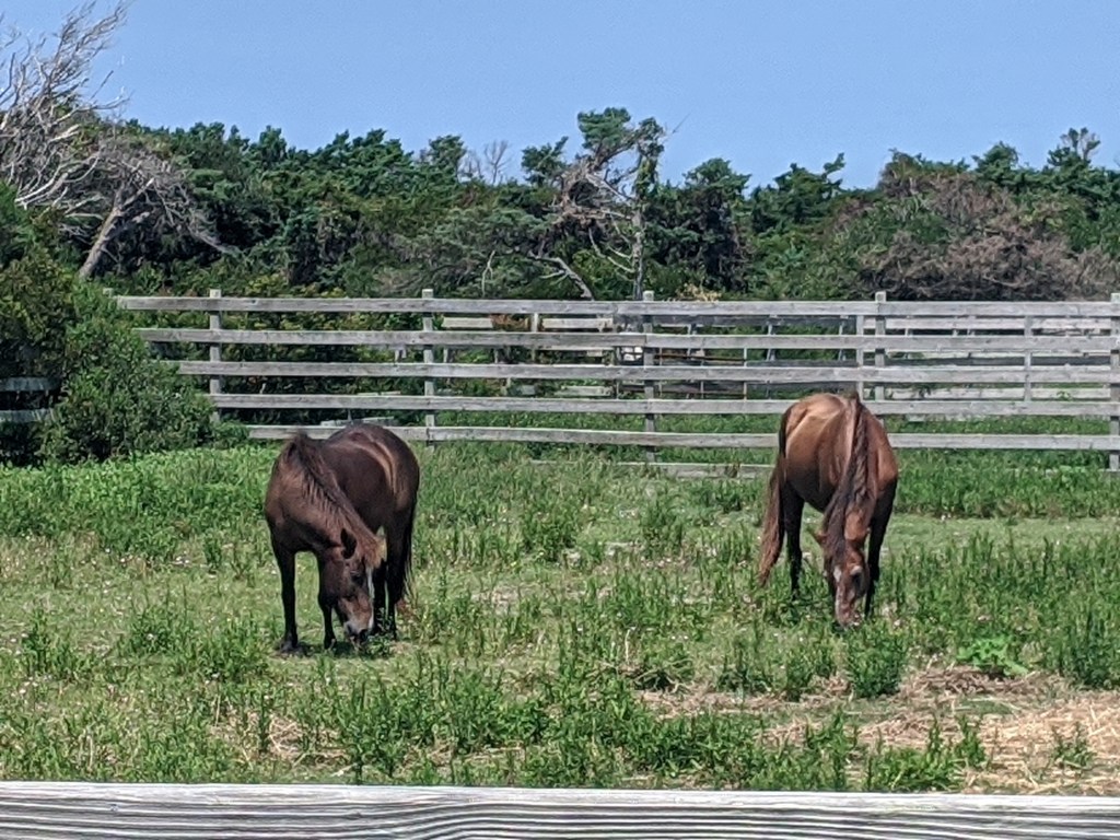 Because we could not enter the National Park on the golf cart, we turned it in Tuesday afternoon and rented a real Jeep on Wednesday. Our plan was to see the beach and check out the ponies who are descendants of 16th century Spanish mustangs. The story is that their ancestors were survivors of a nearby shipwreck. They’ve been a part of the island ever since.