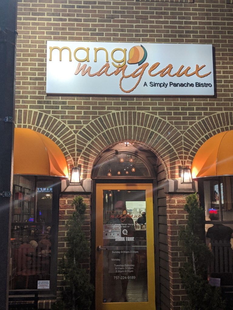 We spent our first afternoon at the pool discussing plans with our traveling buddies Glenn and Maureen on Baboo and Tom and Mary Frances on Island Moon. Maureen mentioned a restaurant downtown called “Mangaeux” and we planned on dinner there Thursday night. It was opened by some ladies who love mangoes and there were lots of delicious dishes and drinks incorporating mango in one way or another. The ladies were featured on Shark Tank for their Mangeaux sauces and preserves.
