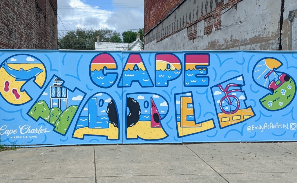 Cape Charles was settled as a railroad town but there is no railroad here now. The main street, just a few hundred yards from the marina, is Mason Street. We found a few good restaurants, some interesting and unique boutique stores, a distillery, a cool Irish Pub housed in a former bank and a water tower painted to look like a lighthouse.