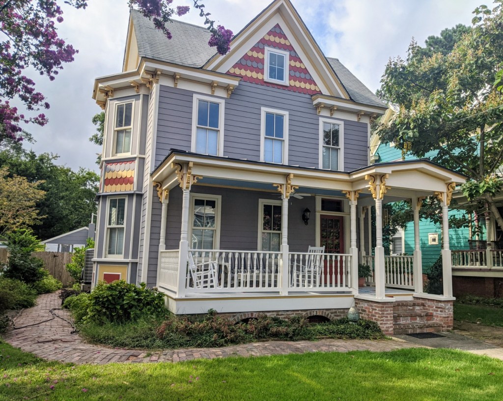 Again, I found the houses to my liking here. Most of them fit into the Victorian category and several were painted in bright colors. One of them looked haunted (I’ll let you pick it out below). I also noticed that many of them have that 3rd story or attic window on the front and that the yards and gardens were well tended.