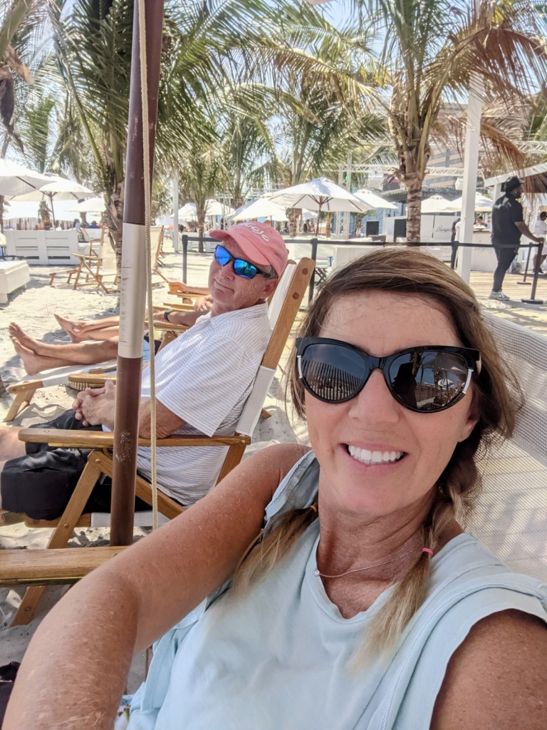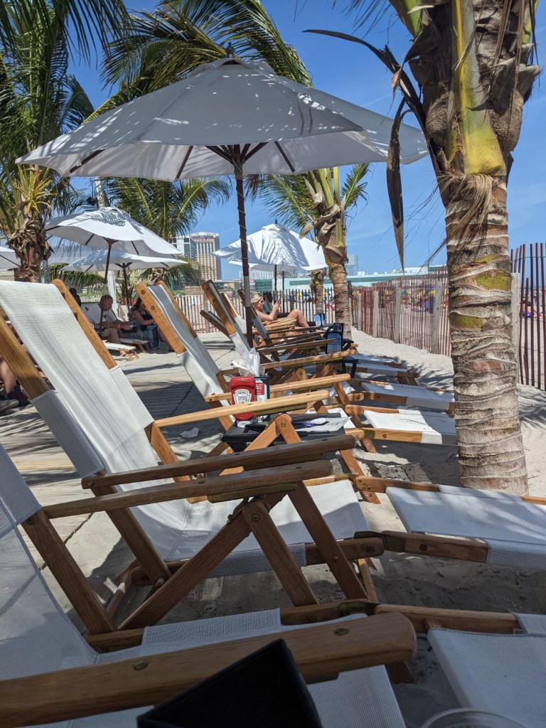 On Sunday, we took an Uber down to the Atlantic City Boardwalk. The old boardwalk runs for miles along the beach and is dotted with casinos and little bodega type shops and restaurants. We found a spot with reclining beach chairs under some palm trees for a cool drink and bit of people watching.