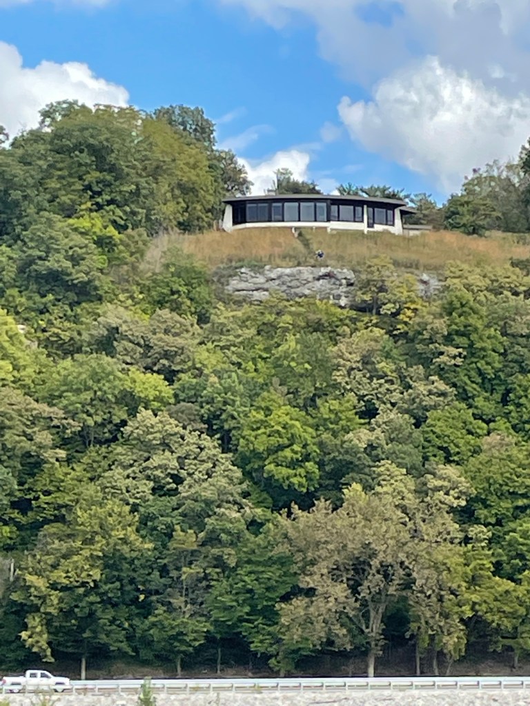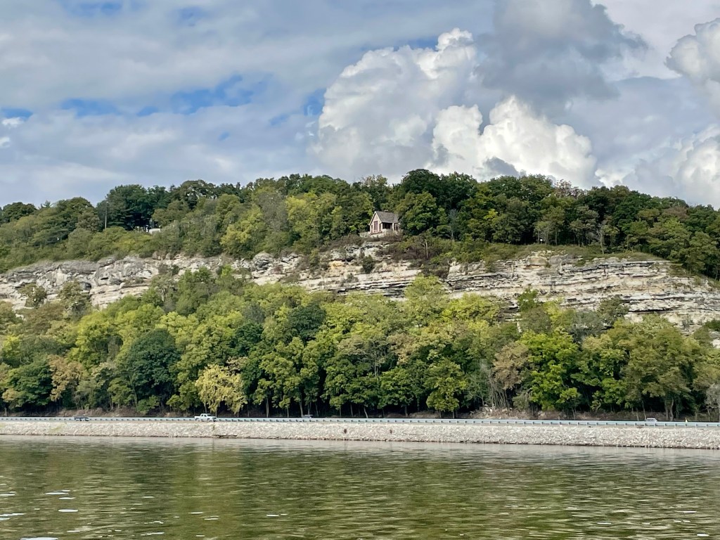 The Illinois river started to become more scenic by way of less industry and more beautiful bluffs and hills. As we neared Alton, we spotted some pretty impressive homes nestled on the top of the bluffs. What a view they must have!